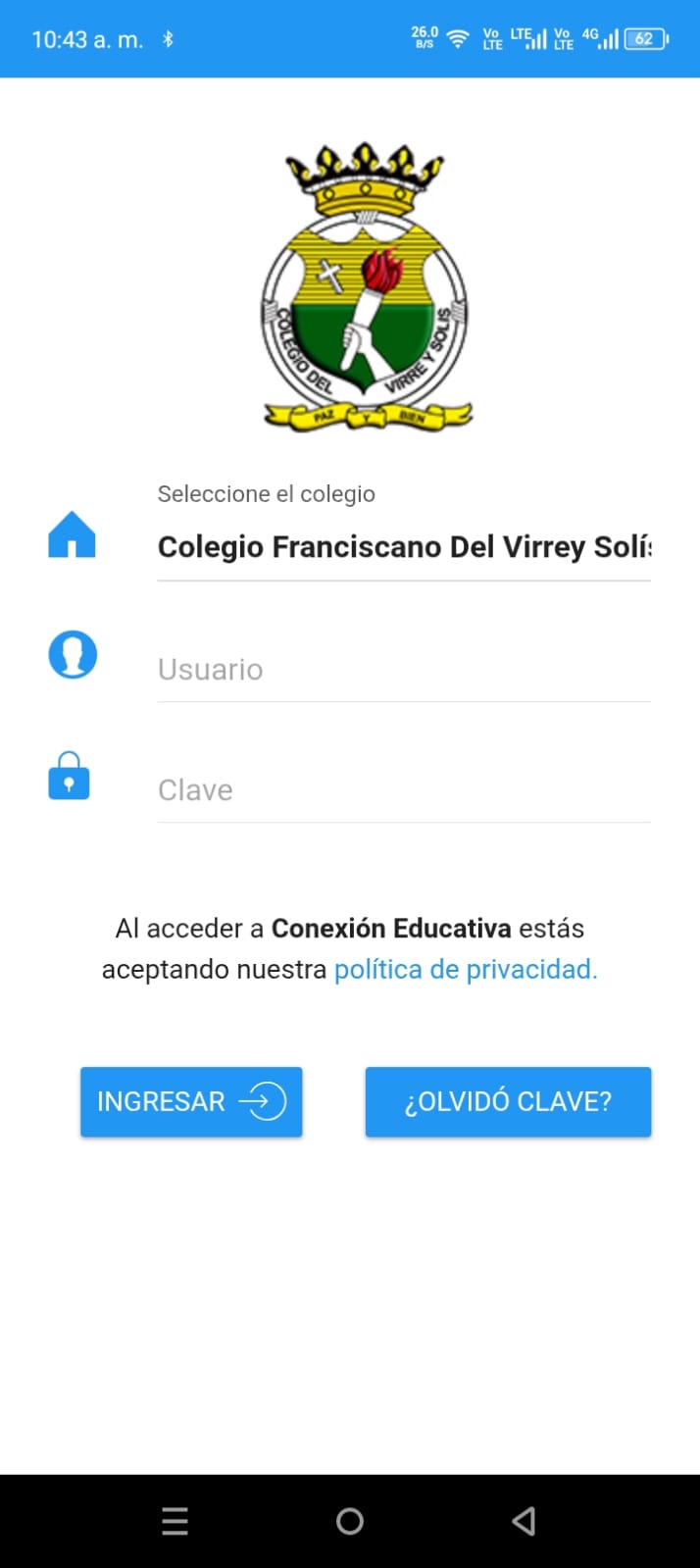 El Colegio Franciscano del Virrey Solís de Bucaramanga informa a la comunidad educativa que la aplicación móvil de Conexión Educativa se encuentra disponible en la Play Store para su descarga y uso (cuenta con mejoras en la seguridad y optimización de recursos).